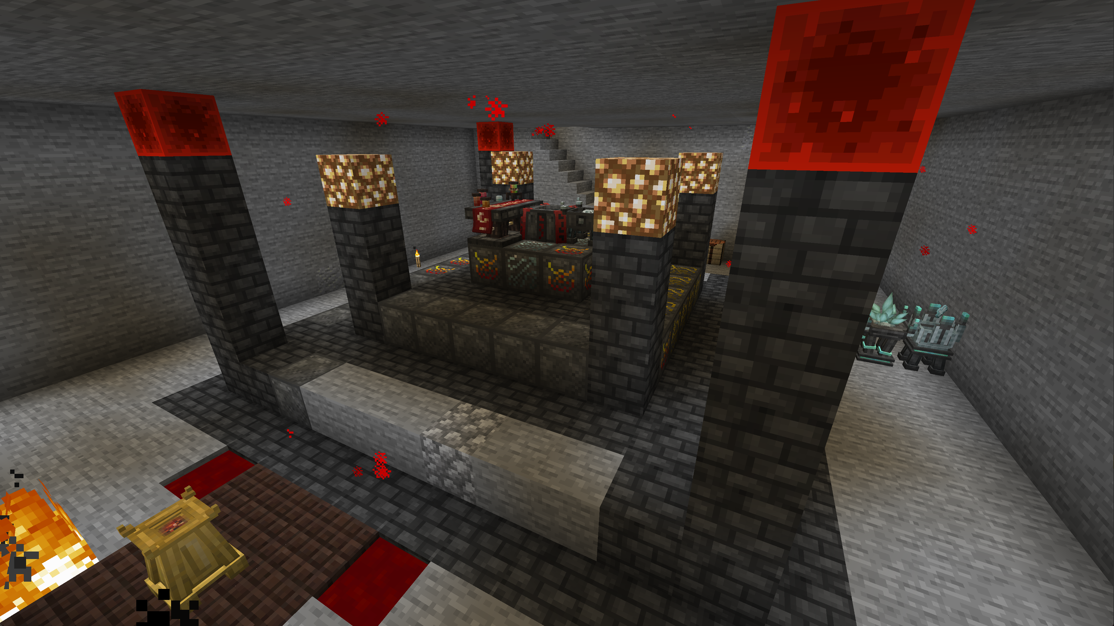 This modpack includes a lot of staple mods, such as AE2, Create and Mekanism. We created our first computerized storage network, our first automated miners, our first nuclear reactors, our first moving contraptions and even some blood sacrifice altars (looking at you, Herbsanth). We also learned (rather quickly) the performance limitations of some of these mods if one is not careful with how machines are designed. We crashed this server multiple times and often had to roll it back to a snapshot due to some crazy unoptimized machine that corrupted the server when left running overnight. Speaking of AE2, this happened to be the one and only time we played that mod with channels enabled. Fun concept but, my god, what a pain.
